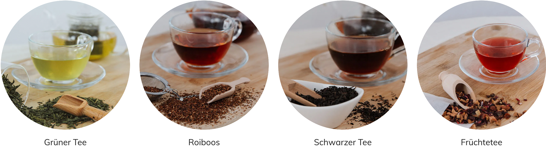 (Earl Grey, Erdbeere, gebrannte Mandel, Grapefruit, Himbeere, Karamell, Kokos, Lemon, Mango, Orange, Schokolade, Vanille)
